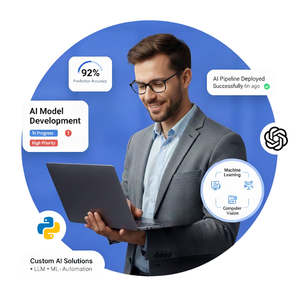 Rivco AI Developers don’t just write code, they build intelligent solutions tailored to your specific goals. From custom models to automation pipelines, our assistants support a wide range of AI-powered solutions.